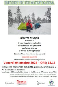 Per questa edizione, la narrazione sarà affidata ad Alberto Murgia, il cicloturista ventenne di Villacidro che si distingue per essere il più giovane protagonista del ciclo di incontri fino ad oggi. Alberto Murgia racconterà il suo incredibile viaggio, una lunga avventura in bicicletta dalla Sardegna, Villacidro, fino a Capo Nord, il punto più settentrionale dell’Europa continentale. Un’impresa che lo ha portato a percorrere 14mila chilometri in soli sei mesi, attraversando paesaggi e culture diverse, e vivendo un’esperienza unica, fatta di sfide fisiche e incontri indimenticabili.
