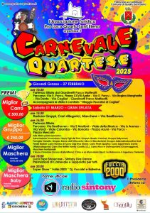Il Carnevale Quartese si prepara a portare allegria e colori nelle strade della città con due grandi sfilate, organizzate dalla Pro Loco Quartu Sant’Elena con il patrocinio del Comune e la partnership di Radio Sintony. L’evento, che coinvolgerà scuole, associazioni, gruppi in maschera e carri allegorici, animerà la città nelle giornate di Giovedì Grasso (27 febbraio) e sabato 1 marzo, trasformando le vie del centro in un palcoscenico di festa e tradizione.