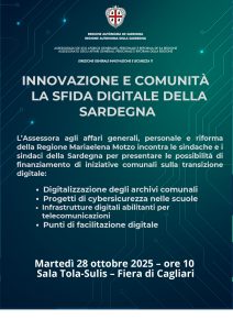 Innovazione, inclusione e partecipazione: sono queste le parole chiave emerse dall’incontro “Innovazione e Comunità – La sfida digitale della Sardegna”, promosso dall’Assessorato degli Affari Generali, Personale e Riforma della Regione Sardegna, che si è svolto nella Sala Tola-Sulis della Fiera di Cagliari. Al centro del confronto, le strategie per una transizione digitale capillare, accessibile e utile alle comunità locali.