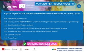 La Regione Sardegna, nell’ambito del Programma Interreg Italia-Francia Marittimo 2021-2027, organizza due eventi di presentazione del IV Avviso per Piccoli Progetti che si terranno il 13 gennaio 2026 a Cagliari e il 20 gennaio 2026 a Nuoro. L’incontro di Cagliari si svolgerà il 13 gennaio 2026 a partire dalle 9.30, con la partecipazione del Segretariato Tecnico del Programma. Il secondo incontro avrà luogo a Nuoro, presso i locali dell’ExMé, il 20 gennaio 2026.
