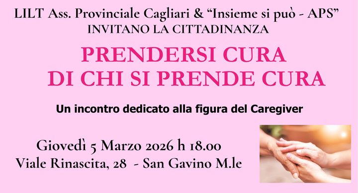 A San Gavino Monreale incontro pubblico “Prendersi cura di chi si prende cura”, promosso da LILT Cagliari e Insieme Si...